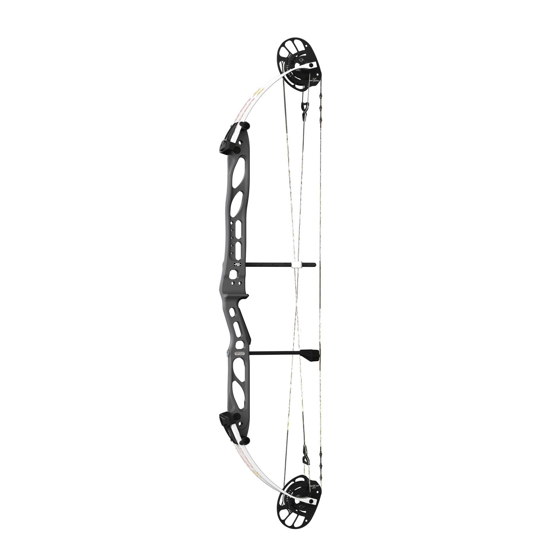The NF cam provides smooth and consistent shots. This platform features wide track limbs, 1/4″ axles, and a straight riser for added stiffness throughout the draw cycle.
